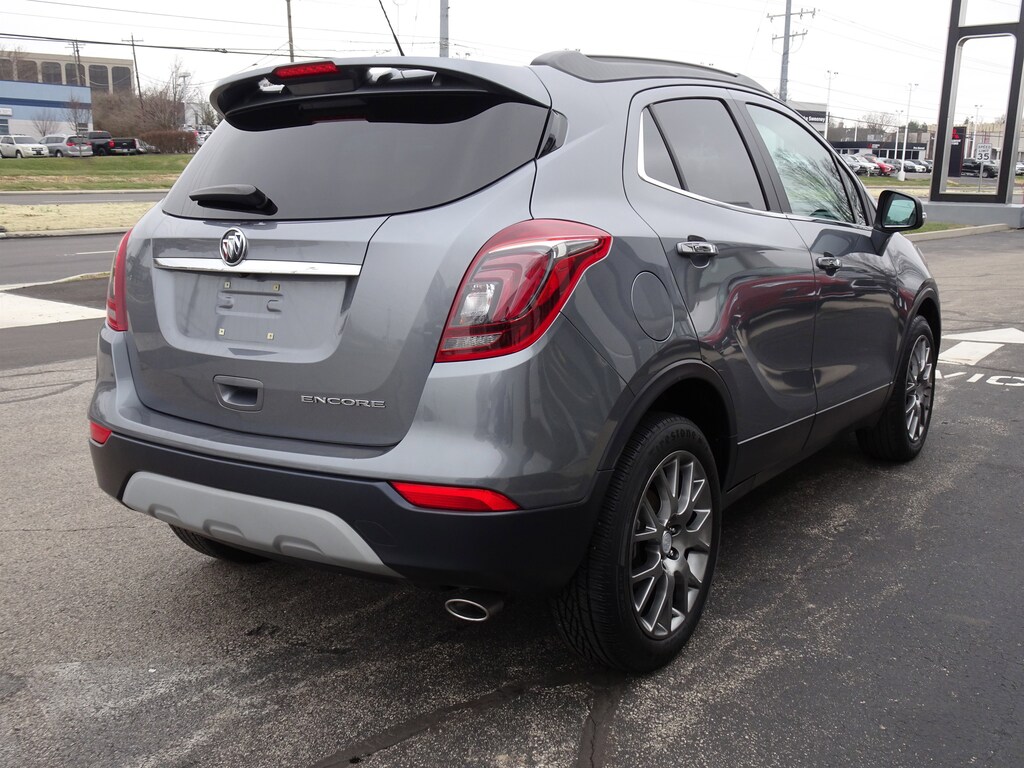 CARFAX One-Owner. Clean CARFAX. Satin Steel Gray Metallic 2019 Buick Encore Sport Touring FWD 6-Speed Automatic Electronic with Overdrive ECOTEC 1.4L I4 SMPI DOHC Turbocharged VVT Encore Sport Touring, 4D Sport Utility, ECOTEC 1.4L I4 SMPI DOHC Turbocharged VVT, 6-Speed Automatic Electronic with Overdrive, FWD, Satin Steel Gray Metallic, Shale Cloth, 120-Volt Power Outlet, 4-Wheel Disc Brakes, 6 Speakers, ABS brakes, Alloy wheels, AM/FM radio: SiriusXM, Dual front impact airbags, Dual front side impact airbags, Emergency communication system: OnStar and Buick connected services capable, Encore Sport Touring Package, Front anti-roll bar, Front Fog Lamps, Front wheel independent suspension, Knee airbag, Low tire pressure warning, Occupant sensing airbag, Overhead airbag, Passenger door bin, Preferred Equipment Group 1SH, Rear Cross Traffic Alert, Rear side impact airbag, Rear Sport Spoiler, Rear window wiper, Remote Vehicle Starter System, Ride & Handling Suspension, Safety Package, Side Blind Zone Alert, Speed-sensing steering, Traction control, Variably intermittent wipers.