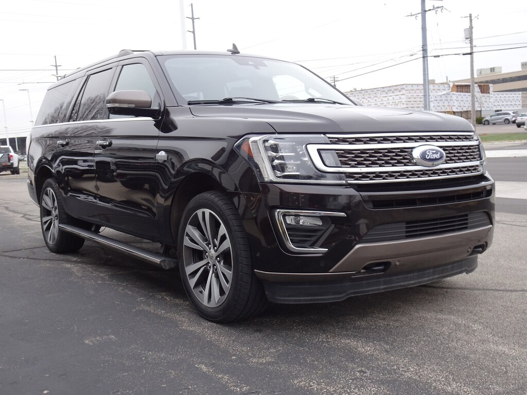 CARFAX One-Owner. Clean CARFAX. Kodiak Brown Metallic 2021 Ford Expedition Max King Ranch 4WD 10-Speed Automatic EcoBoost 3.5L V6 GTDi DOHC 24V Twin Turbocharged Expedition Max King Ranch, 4D Sport Utility, EcoBoost 3.5L V6 GTDi DOHC 24V Twin Turbocharged, 10-Speed Automatic, 4WD, Kodiak Brown Metallic, Medium Soft Ceramic w/Heated/Ventilated Leather Front Captain's Chairs, 12 Speakers, 3.73 Axle Ratio, AM/FM radio: SiriusXM, Brake assist, Electronic Stability Control, Equipment Group 400A Standard Package, Exterior Parking Camera Rear, Four wheel independent suspension, Heavy-Duty Engine Radiator, Heavy-Duty Trailer Tow Package, Integrated Trailer Brake Controller, Memory seat, Pedal memory, Power driver seat, Power Liftgate, Power moonroof, Pro Trailer Backup Assist, Radio data system, Radio: B&O Sound System by Bang & Olufsen, SiriusXM Satellite Radio, Speed-sensing steering, SYNC 3 Communications & Entertainment System, Traction control, Wheels: 22" 6-Spoke Painted Machined-Face Aluminum.
