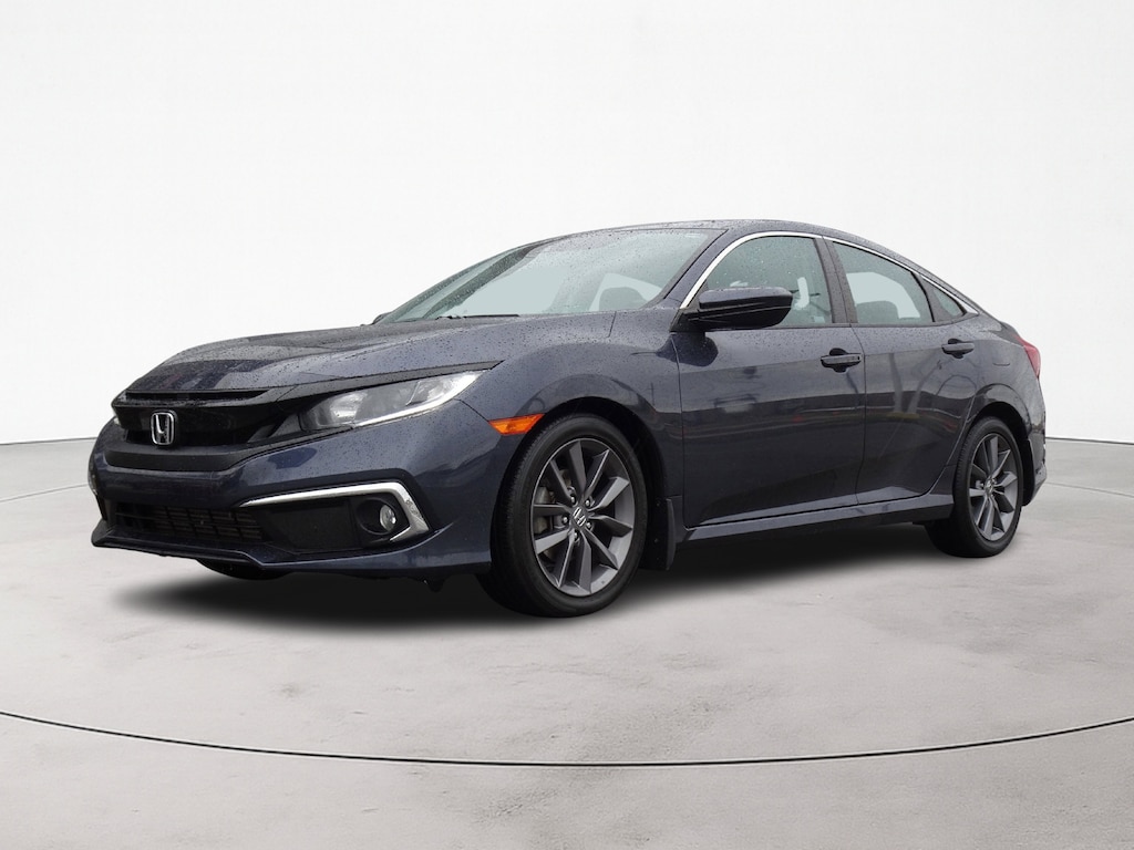 Blue 2020 Honda Civic EX FWD CVT 1.5L I-4 DI DOHC Turbocharged Civic EX, 4D Sedan, 1.5L I-4 DI DOHC Turbocharged, CVT, FWD, Blue, Gray w/Cloth Seat Trim, 4-Wheel Disc Brakes, 8 Speakers, ABS brakes, Adaptive Cruise Control: Adaptive Cruise Control (ACC) with Low-Speed Follow, Air Conditioning, Alloy wheels, AM/FM radio: SiriusXM, Auto High-beam Headlights, Automatic temperature control, Brake assist, Delay-off headlights, Dual front impact airbags, Dual front side impact airbags, Electronic Stability Control, Emergency communication system: HondaLink, Exterior Parking Camera Rear, Forward collision: Collision Mitigation Braking System (CMBS) + FCW mitigation, Four wheel independent suspension, Front anti-roll bar, Front dual zone A/C, Front fog lights, Fully automatic headlights, Lane departure: Lane Keeping Assist System (LKAS) active, Low tire pressure warning, Occupant sensing airbag, Overhead airbag, Panic alarm, Power driver seat, Power moonroof, Power steering, Power windows, Radio data system, Rear anti-roll bar, Rear window defroster, Remote keyless entry, Speed control, Speed-sensing steering, Traction control.