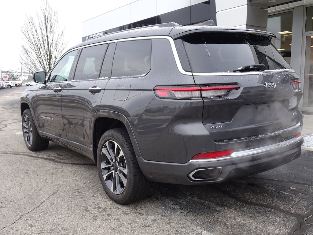 CARFAX One-Owner. Baltic Gray Metallic Clearcoat 2023 Jeep Grand Cherokee L Overland 4WD 8-Speed Automatic 3.6L V6 24V VVT LEATHER, Grand Cherokee L Overland, 4D Sport Utility, 3.6L V6 24V VVT, 8-Speed Automatic, 4WD, Baltic Gray Metallic Clearcoat, Global Black Leather, 19 Speakers High Performance Audio, 950 Watt Amplifier, Active Noise Control System, Adaptive suspension, Air Conditioning, Auto High-beam Headlights, Auto-leveling suspension, Automatic temperature control, Brake assist, Delay-off headlights, Electronic Stability Control, Four wheel independent suspension, Front dual zone A/C, Front fog lights, Fully automatic headlights, Heated front seats, Heated rear seats, Memory seat, Navigation System, Normal Duty Suspension, Power Liftgate, Power moonroof, Quick Order Package 23N, Rear air conditioning, Rear window defroster, Speed control, Steering wheel memory, Steering wheel mounted audio controls, Traction control, Ventilated front seats, Wheels: 20" x 8.5" Machined Face Aluminum.
