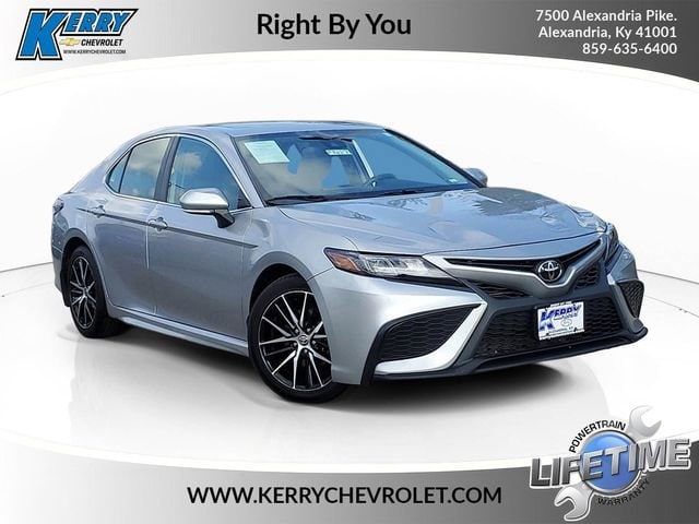 Home of the Lifetime Powertrain Protection! Proudly Serving: Cincinnati, Dayton, Lexington, Louisville, Hamilton, Mason, Sharonville, Beavercreek, Springdale, West Chester, Monroe, Fairfield, Kenwood, Newport, Covington, Fort Mitchell, Fort Thomas, Fort Wright, Independence, Florence, Union, Alexandria, Butler, Falmouth, Dry Ridge, and all of greater Cincinnati, Ohio, Indiana, and Northern Kentucky. 2023 Toyota Camry SE Cavalry Blue ANDROID AUTO/APPLE CARPLAY, TOUCH SCREEN, HEATED SEATS, BACK UP CAMERA, MOONROOF SUNROOF, ONE OWNER, Black w/Sport SofTex Seat Trim w/Fabric Inserts, 16 Alloy wheels, ABS brakes, Active Cruise Control, Blackout Package (TMS), Electronic Stability Control, Front dual zone A/C, Heated door mirrors, Illuminated entry, Low tire pressure warning, Remote keyless entry, Traction control. CARFAX One-Owner. 28/39 City/Highway MPG
